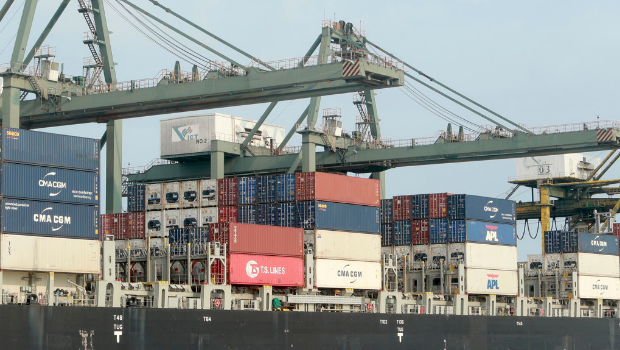 ▲越南胡志明市西贡港内堆满货柜的资料照。(美联社)