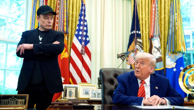 ▲美国总统特朗普与马斯克正式公开撕破脸,《纽约时报》报导,两人撕破脸关键,在于特朗普获报马斯克好友、亿万富豪艾萨克曼(Jared Isaacman)捐款给更多民主党人,他因此撤销艾萨克曼的NASA署长提名。画面为5月30日,特朗普在白宫椭圆形办公室欢送马斯克。(美联社)