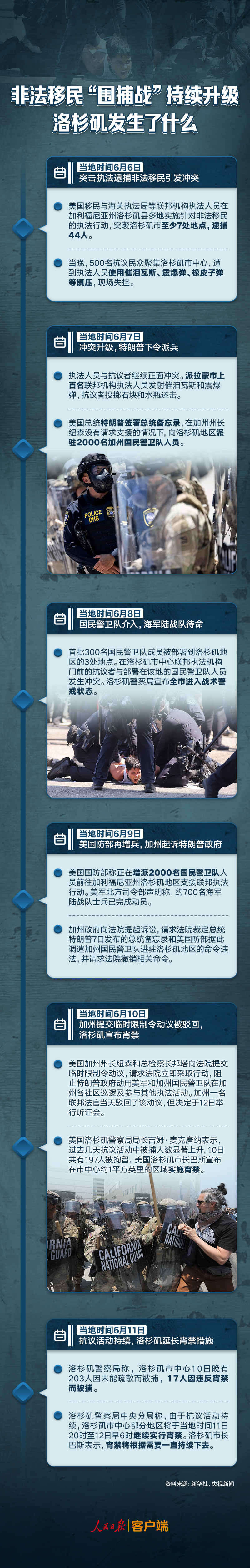 据报道,继洛杉矶持续数日的冲突之后,旧金山、萨克拉门托、休斯敦、圣安东尼奥、芝加哥和纽约已经爆发抗议活动,全美各地计划举行至少30场新的抗议活动。