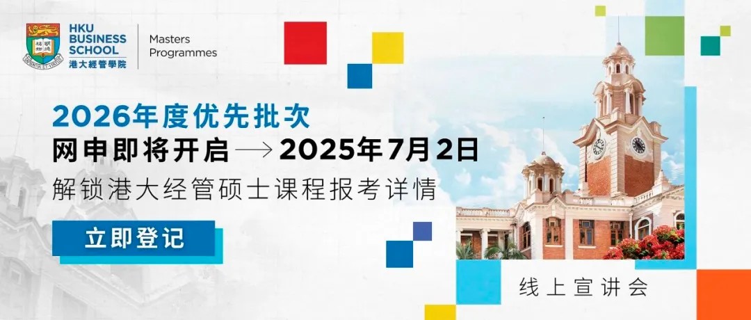 本月初,星岛发布了香港科技大学商学院首次开放26fall提前批的消息香港科技大学商学院首次开放26fall提前批!申请攻略速收。这不没过多久,香港大学经管学院也宣布将于7月2日开启26fall提前批申请通道!