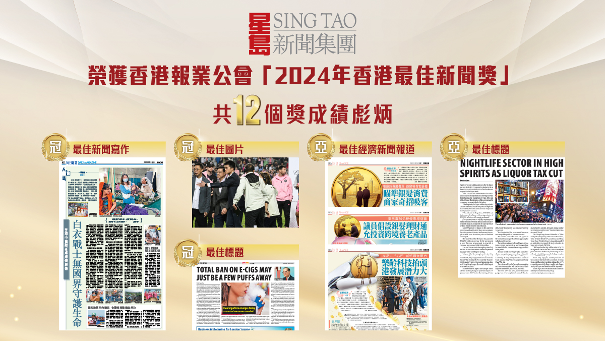 星岛新闻集团旗下《星岛日报》及《英文虎报》勇夺香港报业公会“2024年香港最佳新闻奖”12项大奖,当中包括3项冠军。