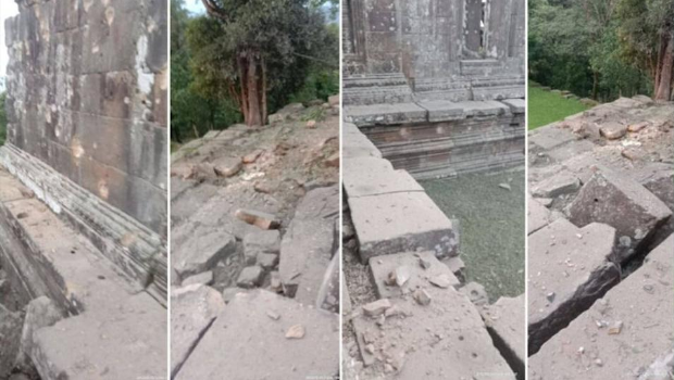 ▲柬军指控泰军炮火猛烈攻击柏威夏寺,令到该寺损毁。 kampucheathmey.com