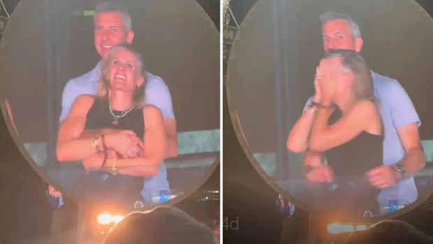 ▲当地时间16日,安迪·拜伦与卡伯特在“酷玩乐队”演唱会上亲密搂抱。图自外媒