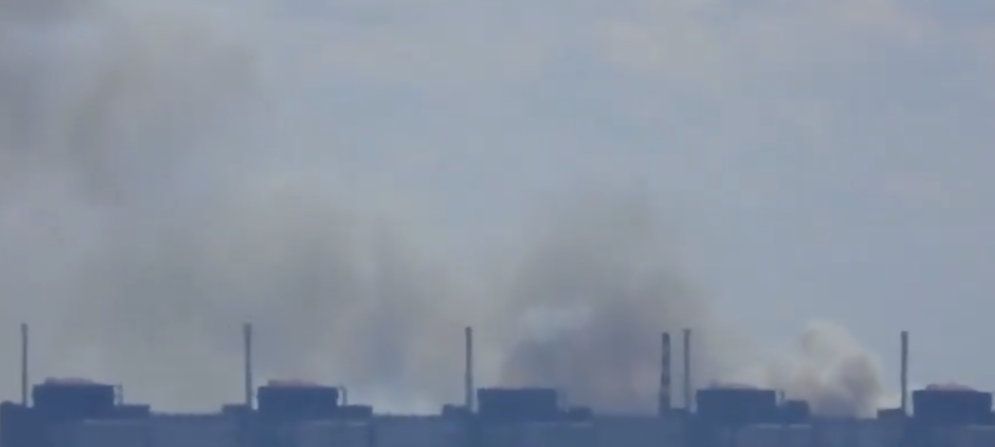 ▲扎波罗热核电站附近地点被看到冒出浓烟。 图源:外媒报道所配视频截图