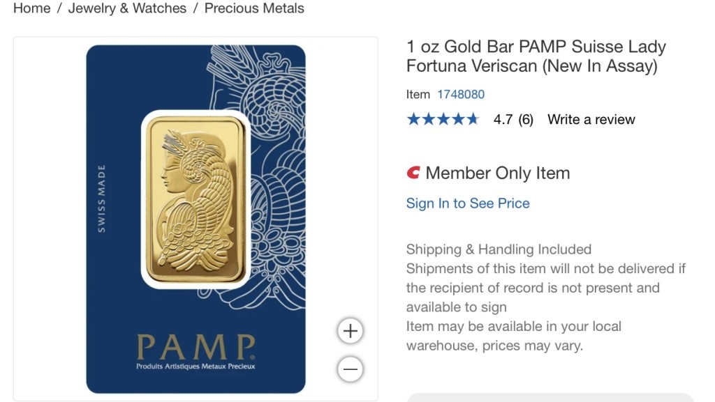 ▲好市多网站上的金条。 Costco