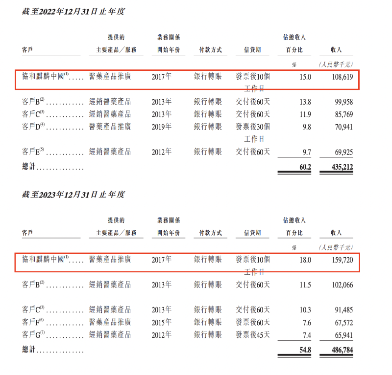维健医药的主要客户包括从事向医院、药房及其他终端渠道配送公司产品组合中医药产品的经销商;及委聘公司以CSO模式提供推广服务的制药公司。值得注意的是,2024年9月,维健医药收购了协和麒麟中国。收购后,公司最大的推广服务客户协和麒麟中国成为公司的全资子公司,不再属于第三方客户。