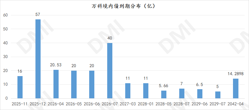 然而,随着框架协议所约定220亿元额度接近用尽,万科后续偿债压力显著。DM查债通数据显示,2025年12月,万科还将有2笔债到期,债券余额合计57亿元。该公司曾表示,拟以营运现金流量及其他外部融资来源予以结算。