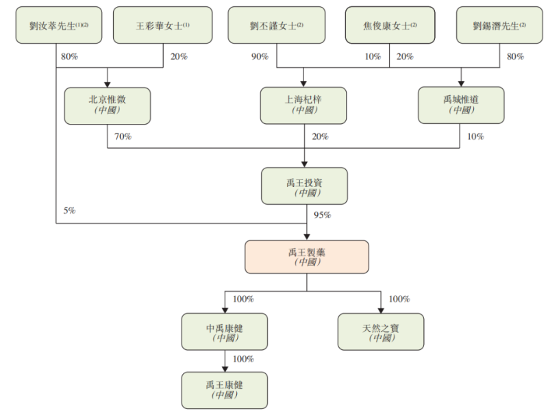 禹王生物最初成立时,注册资本为100万美元,由禹王实业、美国天然药物分别持股85%、15%。其中,禹王实业由刘锡潜家族成员持有,包括刘锡潜及其小姨子焦风英、已故母亲李中涵。