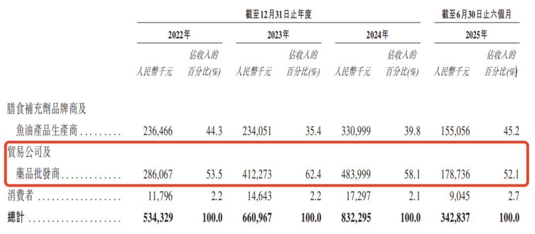 报告期内,禹王生物分别拥有约200名、230名、260名及220名贸易公司及药品批发商客户;同期,公司向贸易公司及药品批发商销售的收入分别占同期总收入的53.5%、62.4%、58.1%及52.1%。