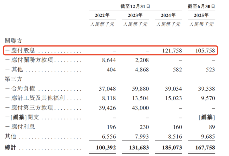 受其影响,2024年末,禹王生物其他应付款项及应计费用由上年同期1.32亿元增加至1.85亿元,其中应付关联方股息达1.22亿元。