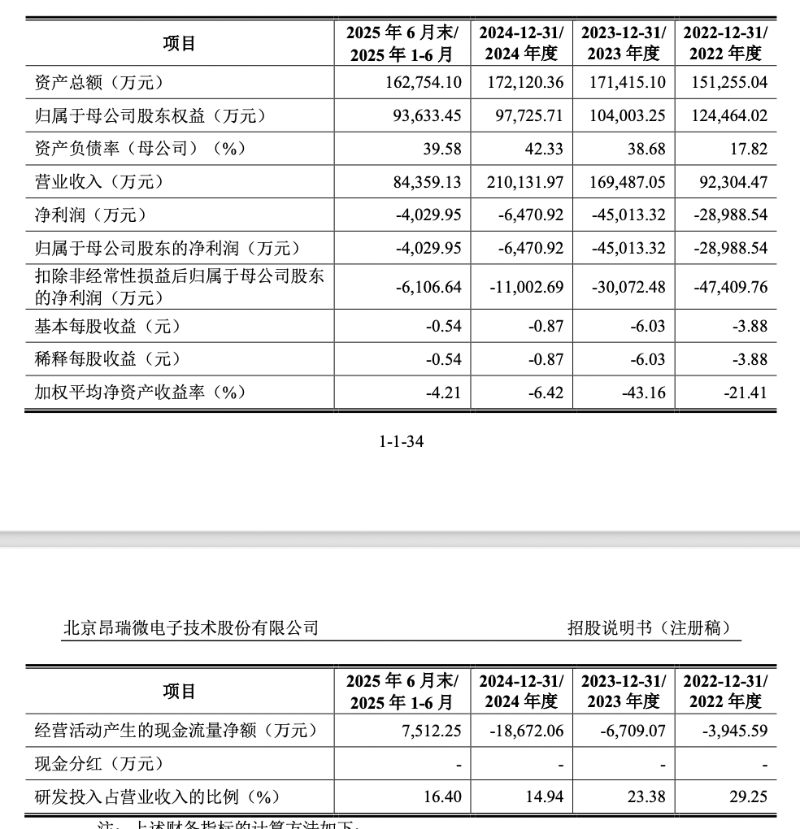 据招股书,2022年-2024年及2025上半年,昂瑞微实现营收分别为9.23亿元、16.95亿元、21亿元、8.44亿元;归母净利润分别为-2.9亿元、-4.5亿元、-6470.92万元、-4029.95万元。