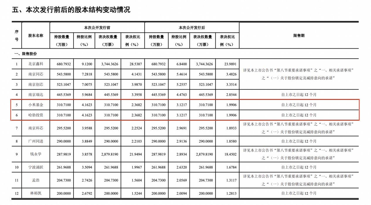 昂瑞微实际控制人为钱永学。本次发行后,钱永学合计控制公司52.48%的表决权,仍为公司实际控制人。另外,小米基金、哈勃投资各持股3.12%,位列第五、第六大股东。