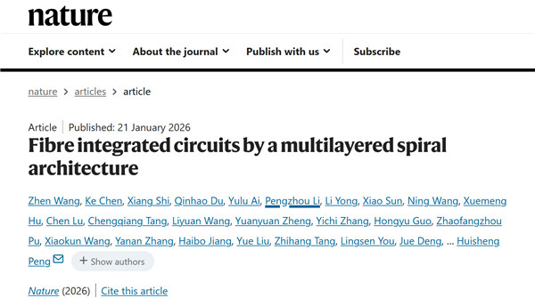 据复旦大学公众号介绍,今天凌晨,国际顶级学术期刊《自然》主刊发表了复旦大学彭慧胜/陈培宁团队的最新研究成果《基于多层旋叠架构的纤维集成电路》,团队成功在柔软的高分子纤维内制造出大规模集成电路,创造出世界首款“纤维芯片”。