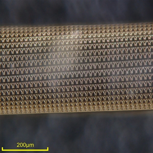 据介绍,传统芯片的光刻工艺普遍依赖平整的硅晶圆衬底,而纤维不仅具有曲面结构,表面积极小,用于制备纤维器件的弹性高分子基底,也很难耐受光刻过程中的各类极性溶剂。