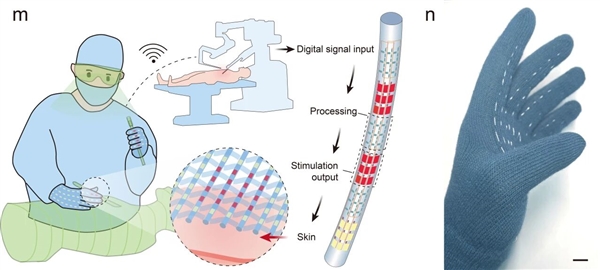 在虚拟现实领域,医生可以戴着基于“纤维芯片”打造的智能触觉手套进行远程手术,可以清晰感知脏器硬度。