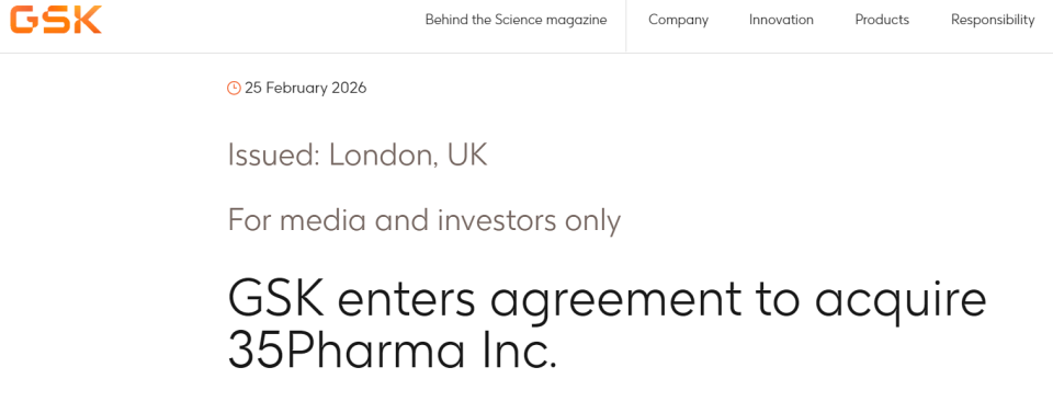 此次收购将把35Pharma的实验性肺动脉高压药物HS235纳入GSK麾下,从而强化其呼吸系统疾病领域的未来产品储备。据悉,35Pharma专注于新型蛋白质类疗法的开发。