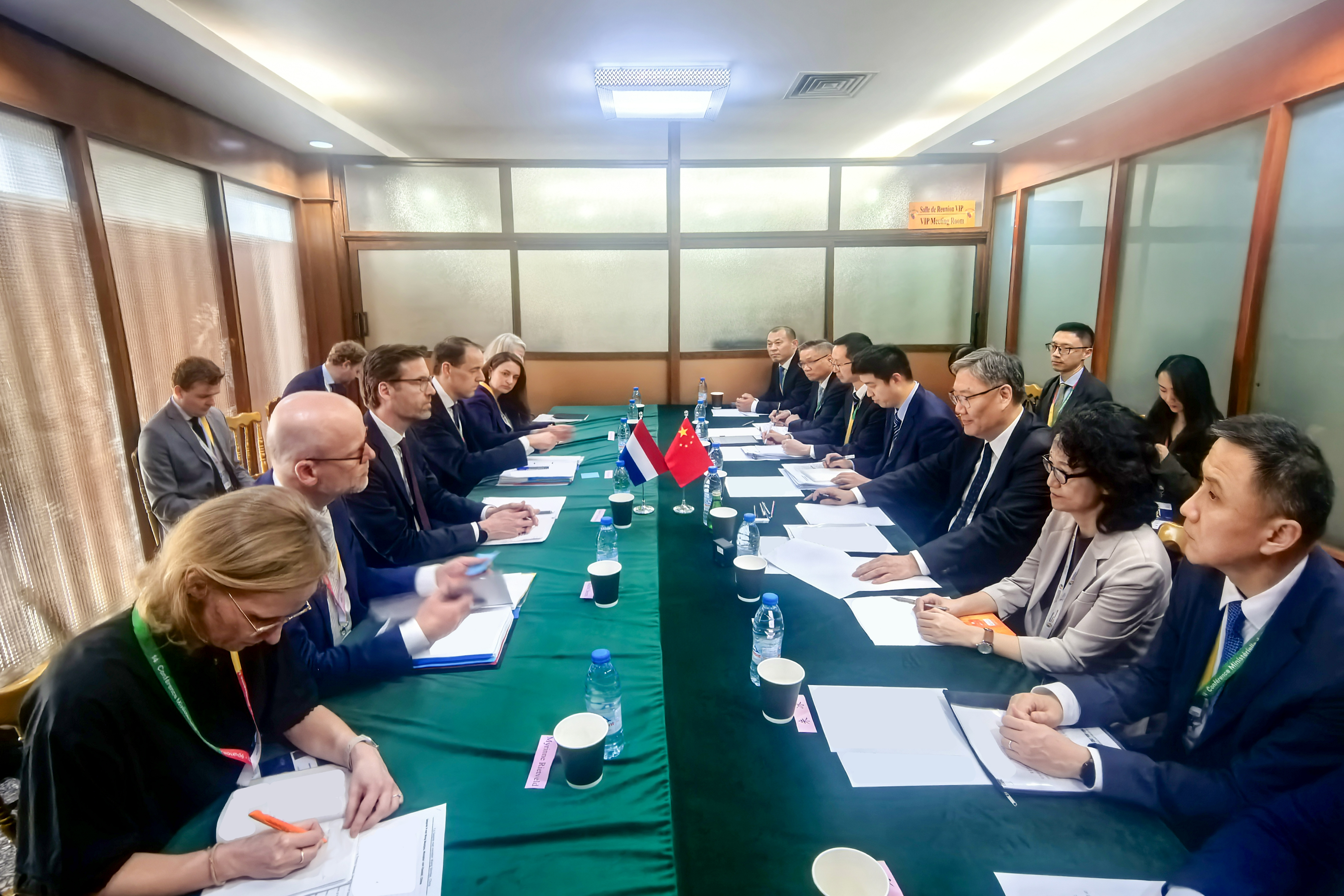 据商务部网站,3月25日,商务部部长王文涛在喀麦隆雅温得出席世贸组织第14届部长级会议(MC14)期间,会见荷兰外贸与发展合作大臣舍尔茨玛。双方就中荷经贸关系和世贸组织改革等议题深入交换意见。中国常驻世贸组织代表团大使李詠箑参加会见。