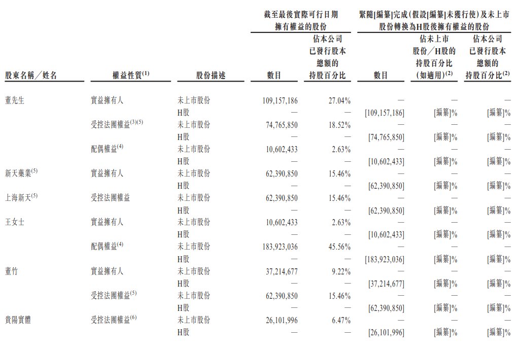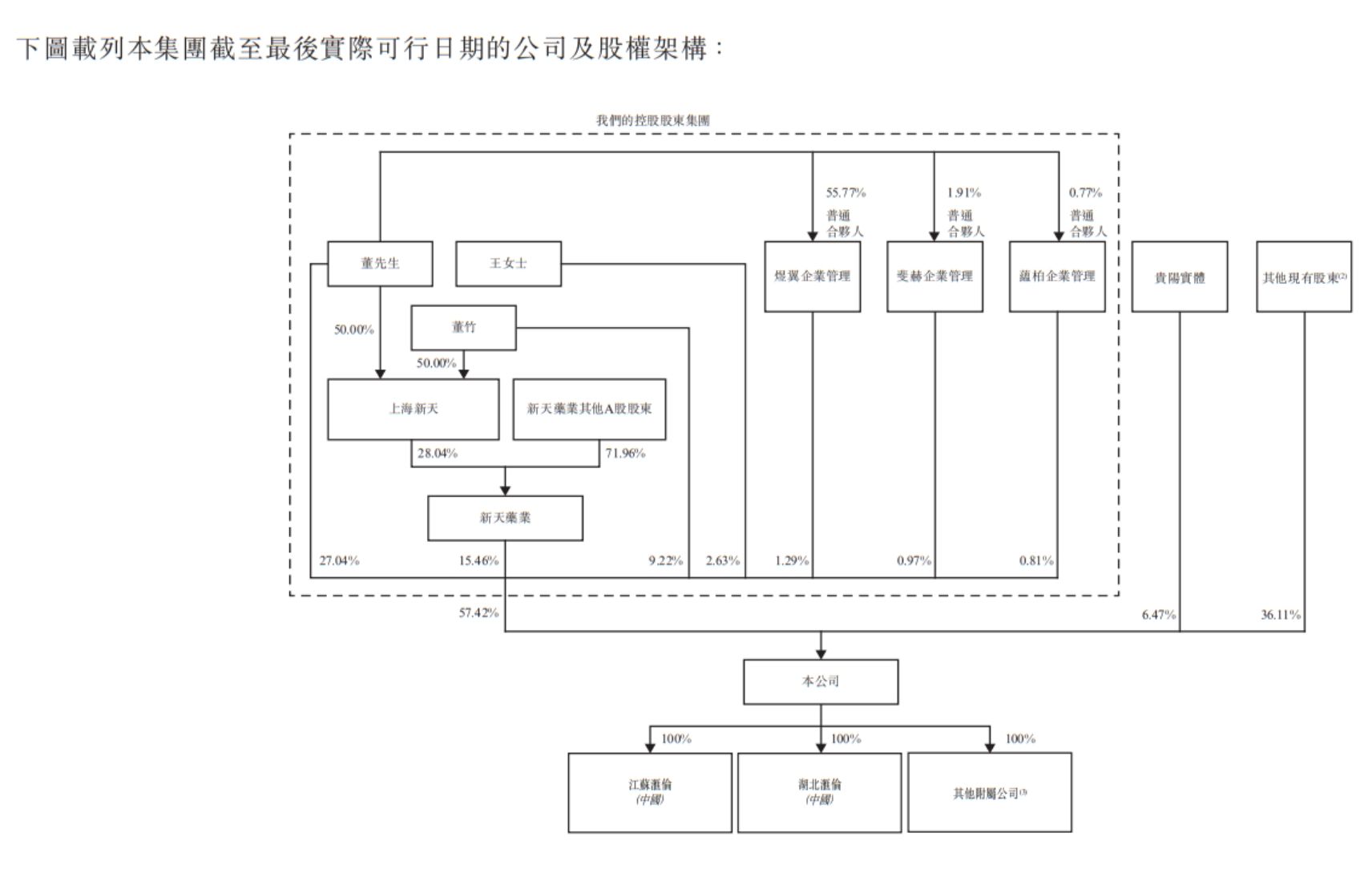 截至最后实际可行日期,董先生、董竹、王女士、煜翼企业管理、斐赫企业管理、蕴柏企业管理、上海新天及新天药业构成公司的控股股东,合计有权行使公司已发行股本总额约57.42%所附带的表决权。