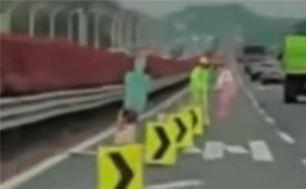 行车记录仪显示,车辆在撞击过程中未见明显减速,车速仅微降至87km/h时,与路侧一名施工人员擦身而过,该人员迅速翻越护栏避险,事故未造成人员伤亡。