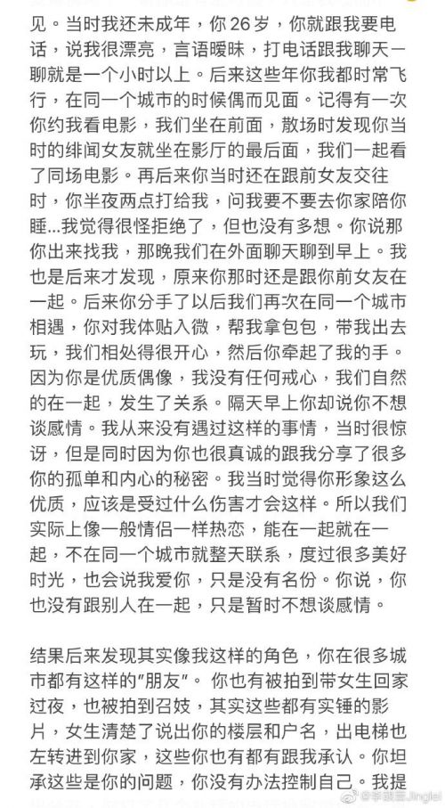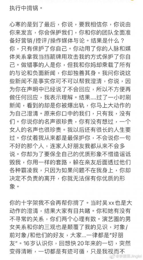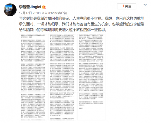 附:李靓蕾发布的长文内容