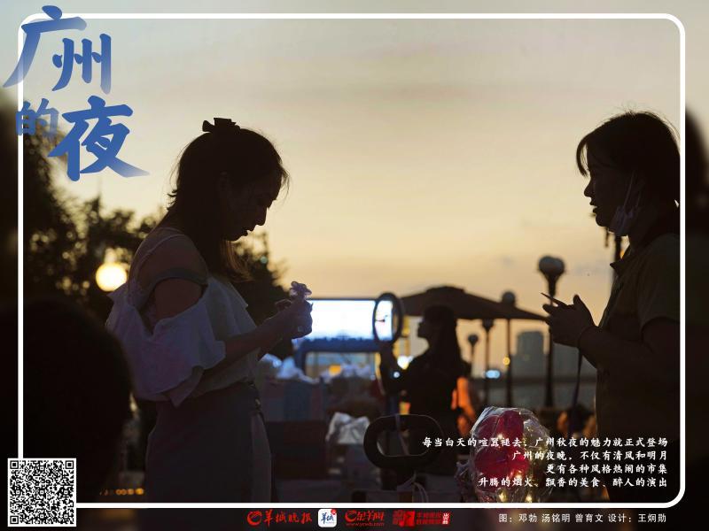 每当白天的喧嚣褪去,入夜后的珠江边,有一排排打开后备箱的汽车,车主们装点上一串串氛围感十足的灯泡,配上文艺风的霓虹灯牌,秒变微缩版创意商店。网红主播会带网友打卡这里的夜市生活,结识新朋友……这里充斥着人们对美好生活的向往和追求。