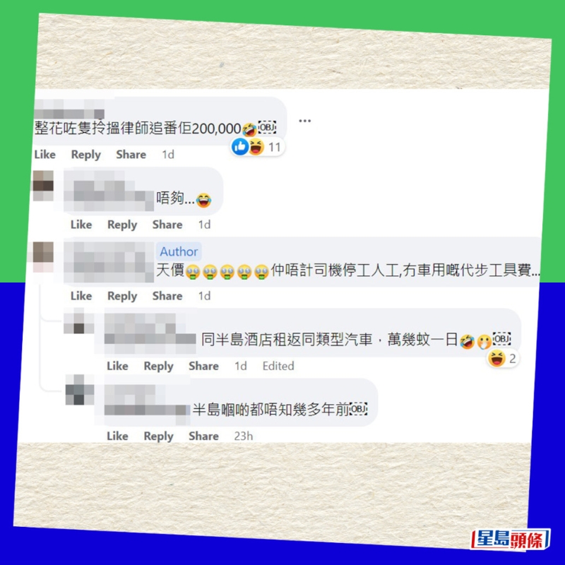网民热烈讨论事件,有网民估计该“劳斯莱斯”身价约6百万至1千2百万左右,部分网民认为可能由于车价贵,锁车队成员亦不敢掉以轻心,因此今次处理上有所不同,以防在锁车过程中“整花”车辆而要赔偿,“锁完唔走等司机返嚟,同以往一锁完即鸡咁脚走好唔同。”“小心整花人部车,你班XX赔唔起。”“”“整花咗只铃搵律师追番佢200,000。”“玩大啲Call定 公证行,㗎车有撞花痕迹,汽车代理公司、律师到场。”“最期待嘅画面系佢地整花人架车。”
