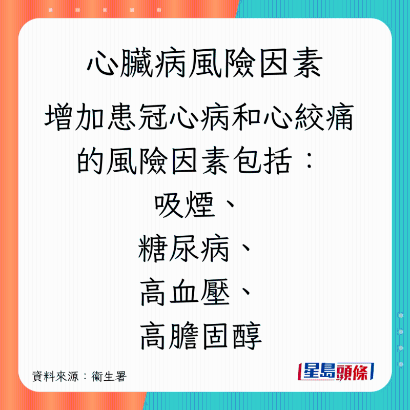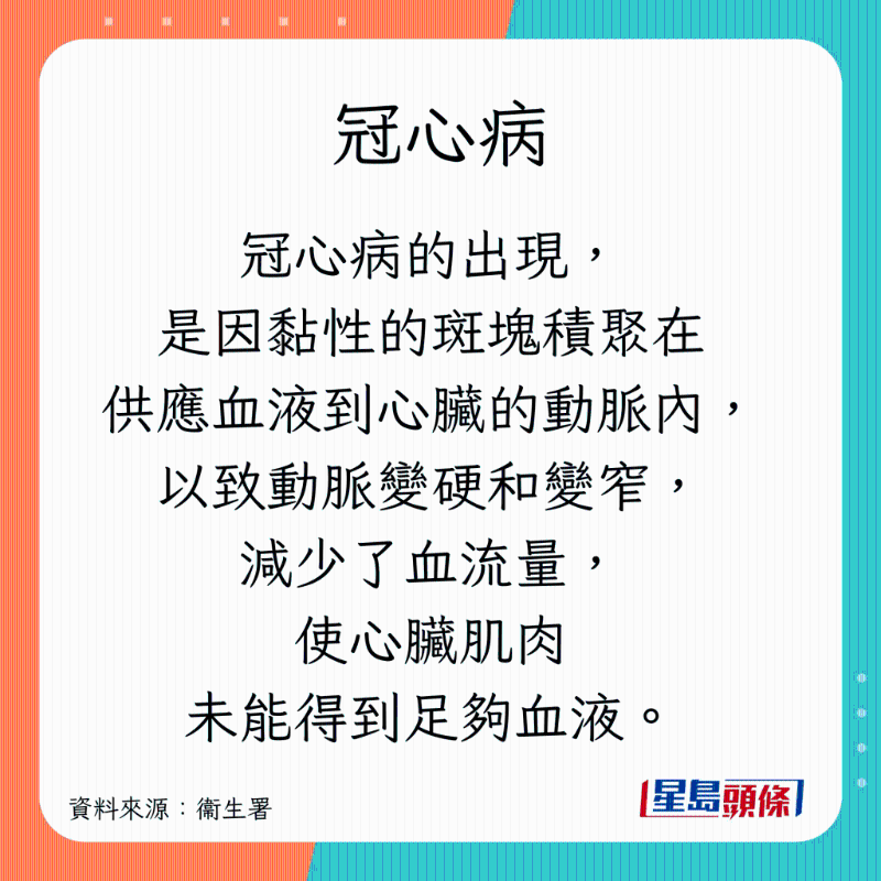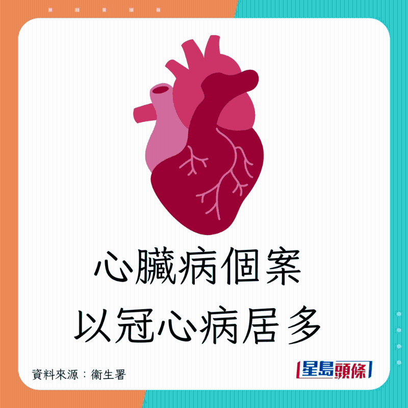 香港卫生署指,心脏病为香港常见的致命疾病,尤以冠心病最多,详情如下: