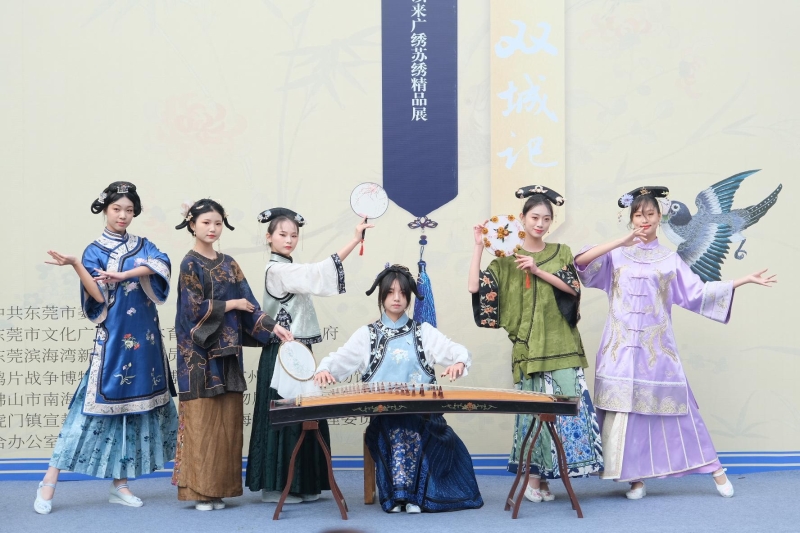 On the morning of November 14, the "Canton Embroidery and Su Embroidery Exhibition since the Ming and Qing Dynasties" opened in Dongguan. At the opening ceremony, guests watched a wonderful performance featuring the content of the exhibition. Costume designers used the exhibit patterns as inspiration to design and produce traditional costumes, adapting ancient embroidery techniques to the trend of the times. Students from the Textile and Fashion School, dressed in fancy clothes, performed at the event. The exquisite embroidery patterns of thousands of years of history traveled through time and space, blooming with new vitality and vigor in inheritance and development.