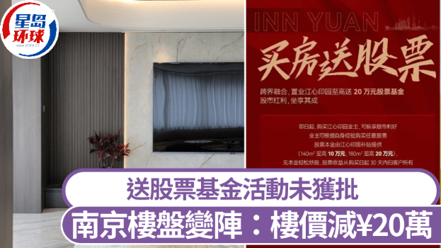 近日,内地网络流传一张促销海报,招商蛇口南京江心印园项目推出“买房送股票”活动,最高送20万元(人民币‧下同)股票基金,业主可根据自身经验购买股票。