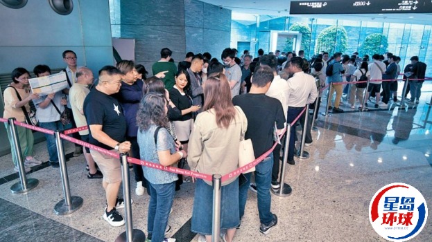 天玺.天连日来开放示范单位参观,昨为开放示范单位以来首个周末假期,就位于九龙站环球贸易广场展销厅现场所见,人流相对平日更为多,当中电梯大堂位置已出现大排长龙情况,其示范单位更逼爆睇楼客,场面相当墟冚,整体气氛热闹。