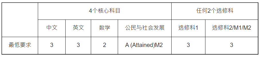 加权科目:英文(x2)、数学(x2)、生物、化学、物理、组合科学、设计与应用科技(x2)、M1/M2(x1.5)