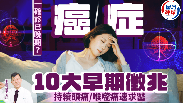 【癌症症状/征兆/病征】一确诊癌症,往往已是中晚期?有医生指出,癌症发展至晚期往往需时多年,若发现身体持续出现10种症状,例如头痛或喉咙痛,可能是癌症早期征兆,宜及早求医,以免延误治疗时机。