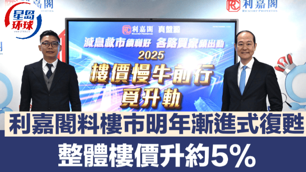 影响楼市走势的利淡因素争持,利嘉阁总裁廖伟强预计,楼市明年渐进式复甦,整体楼价升约5%,市场继续由一手新盘主导,料录1.8万宗。其中较睇好北部都会区及启德区后市走势。