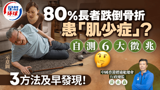 年龄增长,肌肉快速流失,大大影响长者日常生活。中国香港体适能总会行政总监黄永森博士接受《星岛》访问指,多达80%因为跌倒而骨折的长者均患有肌少症,此症也常与骨质疏松症一起出现,严重者会丧失自理能力,甚至增加死亡风险。长者可以如何自测风险,及早发现?