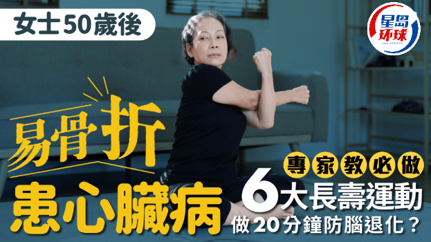 【长寿/延寿运动】适当运动是促进大脑健康及长寿的基础,有专家推介了6种适合50岁以上女性的运动,不但有助锻炼肌肉、改善平衡力,而且更有提升认知功能等功效,降低患脑退化症、心脏病的风险,让年老的身体仍可活动自如,最终达到健康长寿的目标。