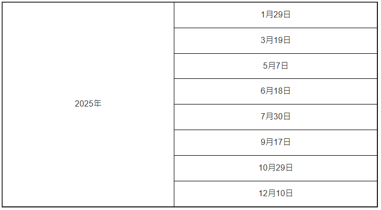 以下为联储局今年议息时间表: