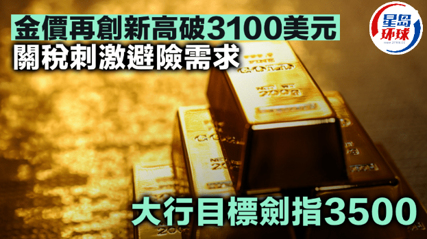 随着美国总统特朗普对伊朗和俄罗斯作出威胁,并扬言周三(2日)宣布的“对等关税”,将涵盖所有贸易伙伴,加剧了市场对于全球贸易战的担忧之余,亦引发了避险需求增加,刺激国际金价持续上升,今日再创新高及升穿3,100美元关口,一度高见3,128美元。事实上,多间大行均看好金价后市,其中高盛料ETF资金流入强于预期,以及央行持续的买入需求,将继续利好金价后市;而美银分析师更将目标价上调至每盎司3,500美元。