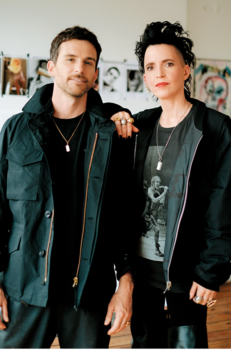 新作品融合了Hannah的标志性庞克风格,以及Guy的实用设计美学,好像造型如刀片形状的吊坠,就代表了探讨力量和脆弱共存的悖论。焦点的A Vanitas Stoned胶囊系列,主要选用18K黄金与密镶蓝宝石打造,作品亦主打中性风格的设计。亮点作包括灵感来自医院手带的Razor Wristband,设计师以这款黄金手镯唤起对生命的思考。此外,刀片图案也出现在黄金款,又或缀以两颗枚蓝宝石的标志性黄金项链中,既可单独佩戴亦可叠戴。至于同样提供黄金版本及镶有蓝宝石版本的Razor Ring Taper指环,亦流露大胆前卫的特质。