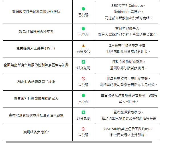 《政客》为特朗普上任100日中,主要施政承诺或推行的兑现情况埋单计数,以下是其中最为人关注的议题,并以表列形式展示。