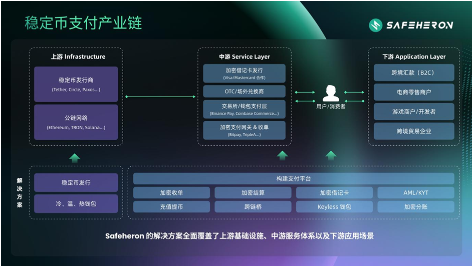 针对行业普遍面临的痛点,Safeheron 最近正式发布一站式稳定币&支付解决方案,将钱包安全、合规监管、交易自动化与成本优化全面集成,为企业显著降低系统建设成本与维护复杂度,合规与安全风控的双重保障机制则有效控制运营风险及合规支出,同时大幅提升支付运营效率,使企业能够更专注于优化客户支付服务体验。