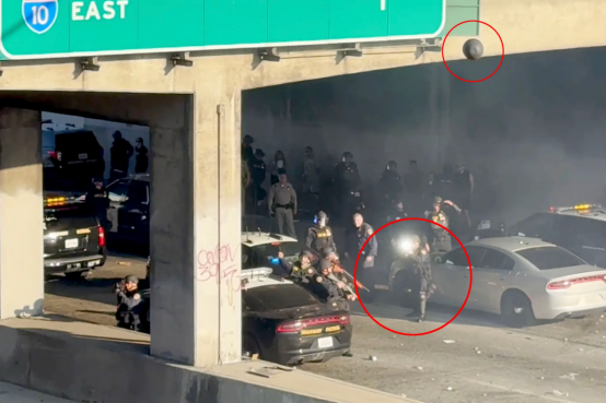 ▲美媒记者在报道洛杉矶骚乱时,捕捉到了自己被橡皮子弹击中的瞬间。图源:美媒