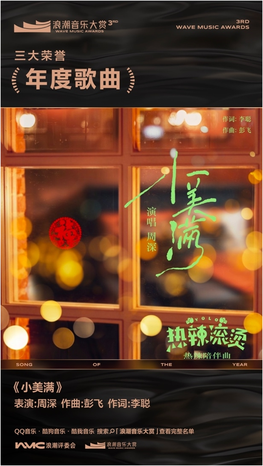 华语音乐年度荣誉揭晓 周深《小美满》获得年度歌曲