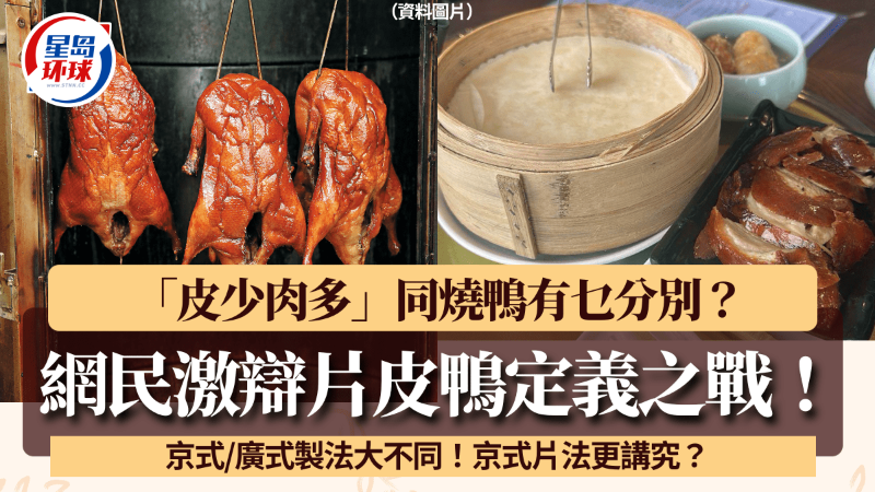 片皮鸭、北京烤鸭有没有分别? “皮多肉少”还是“皮少肉多”才是正宗? 近日,有网民在讨论区发起关于片皮鸭的讨论,表示近年在香港吃到的片皮鸭大多都是“肉多过皮”,“细细个见师傅系隔离真系片皮好正,当然都会有肉但好薄,而家片皮鸭系你面前其实系叫切件,唔算片皮”,质疑与正宗北京烤鸭的做法不一样,更有人直言“同烧鸭有咩分别?”