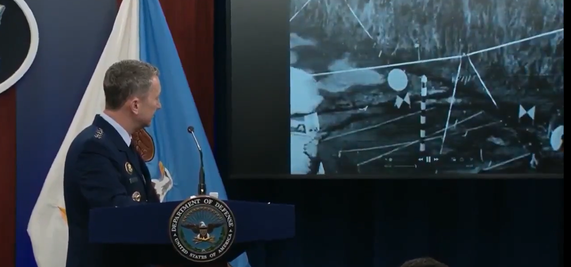 凯恩播放了一段这些巨型炸弹的测试影片。慢动作画面显示炸弹穿透疑似地下堡垒的建物,随即橘红色光芒从设施的通道冒出,然后爆出巨大火球。他说:“当然,目标内没有人,所以我们没有直接来自目标的画面。”凯恩和赫格塞斯的发言大多聚焦于福尔多设施,其他两处目标纳坦兹(Natanz)与伊斯法罕(Isfahan)未被提及。