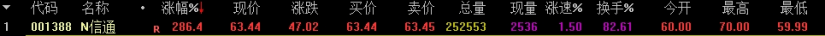 当天,信通电子开盘价60.00元,较16.42元的每股发行价涨265%,随后10分钟内一度冲至70.00元,最高涨幅达326%。