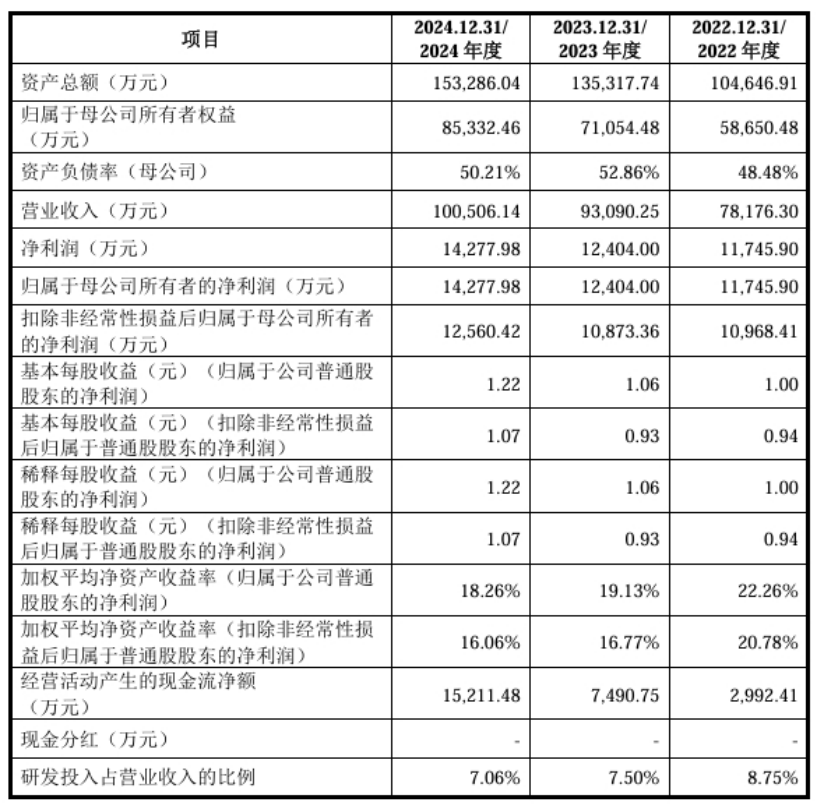 业绩方面,信通电子2022年至2024年营业收入分别为7.82亿元、9.31亿元和10.05亿元,净利润分别为1.17亿元、1.24亿元和1.43亿元。