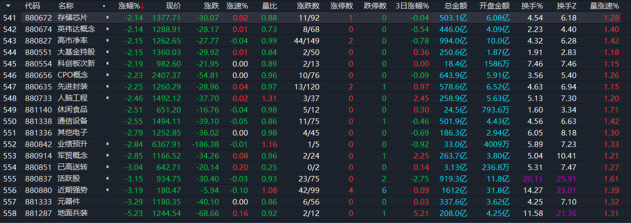 半导体板块集体走低,锴威特、大为股份领跌;脑机接口板块集体调整,翔宇医疗、爱朋医疗、创新医疗纷纷下挫。光刻机概念跟跌,蓝英装备、旭光电子跌幅居前。