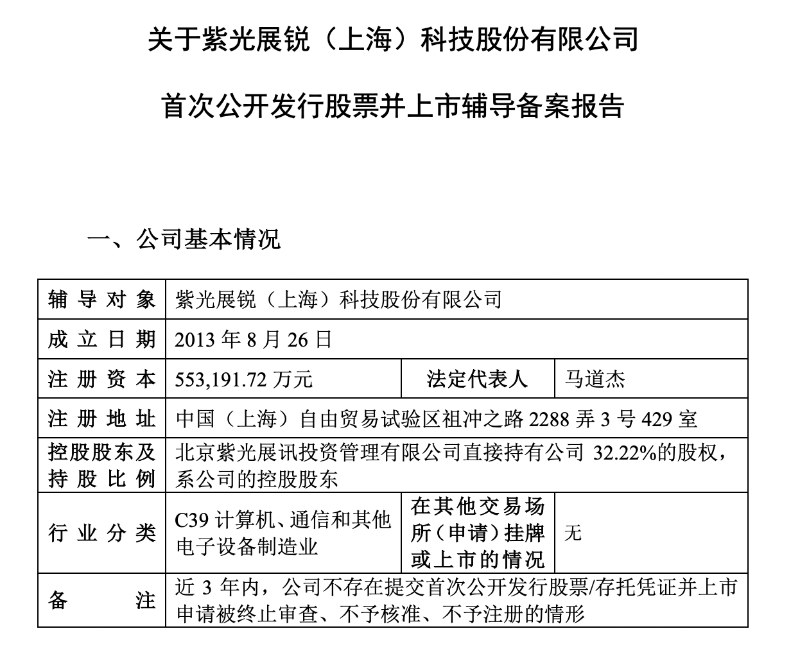 近日,紫光展锐(上海)科技股份有限公司(以下简称:紫光展锐)在上海证监局进行IPO辅导备案,辅导机构为国泰海通、中信建投。