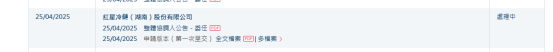 2025年7月上旬,中国物流与采购联合会在2025年冷链大会上表示,中国冷链供应链发展态势良好,综合竞争力提升,且在全球贸易重构背景下将迎来新的发展机遇。在这一背景下,湖南冷链巨头红星冷链(湖南)股份有限公司(以下简称“红星冷链”)早先已向港交所递交上市申请,目前状态为处理中。建银国际、农银国际为其联席保荐人。