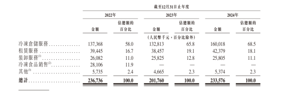 2022年至2024年,分别有超过75.0%、72.0%及79.0%的门店客户亦使用冷冻仓储服务。